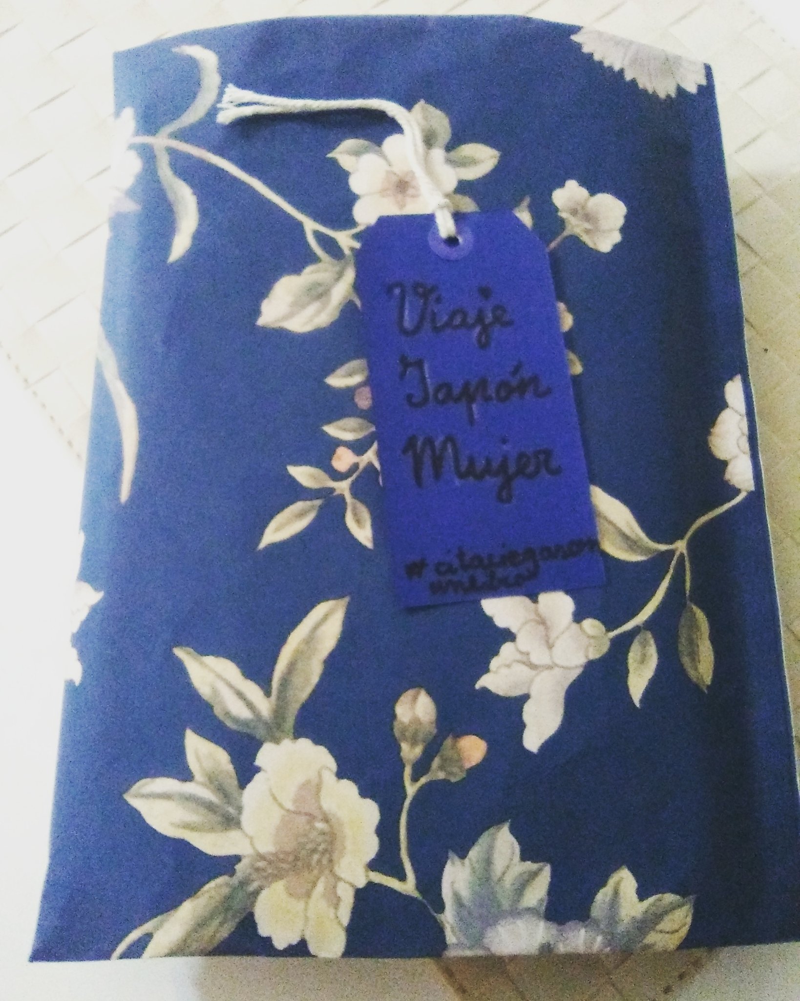Las palabras de referencia eran Japón, mujer, viaje. Lo envolví todo en un papel de flores muy japonés (reciclé un sobre de regalo de woman secret) y al correo.